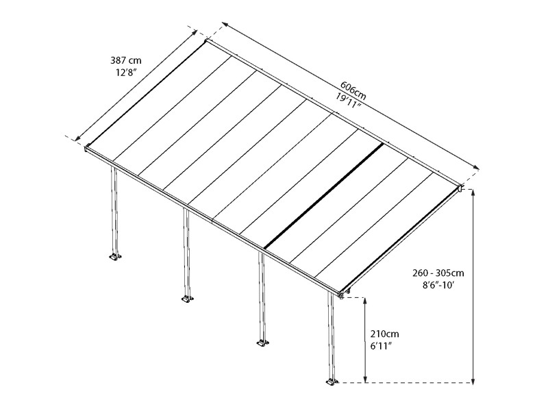 The extension complements the Feria-type canopies – series 4 m (depth 4 m) canopy.