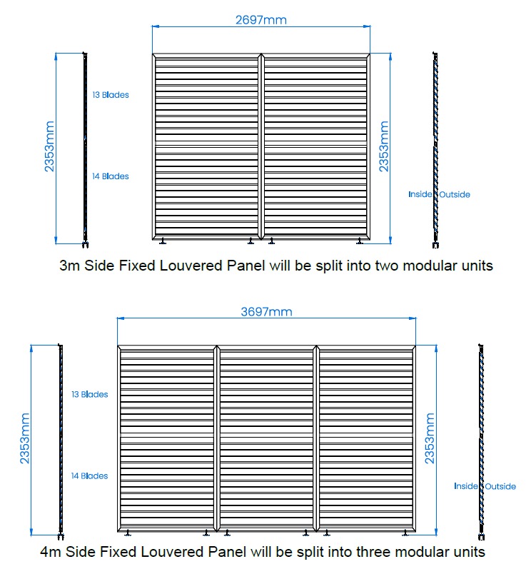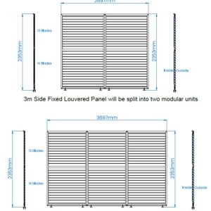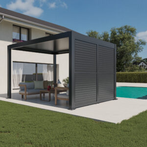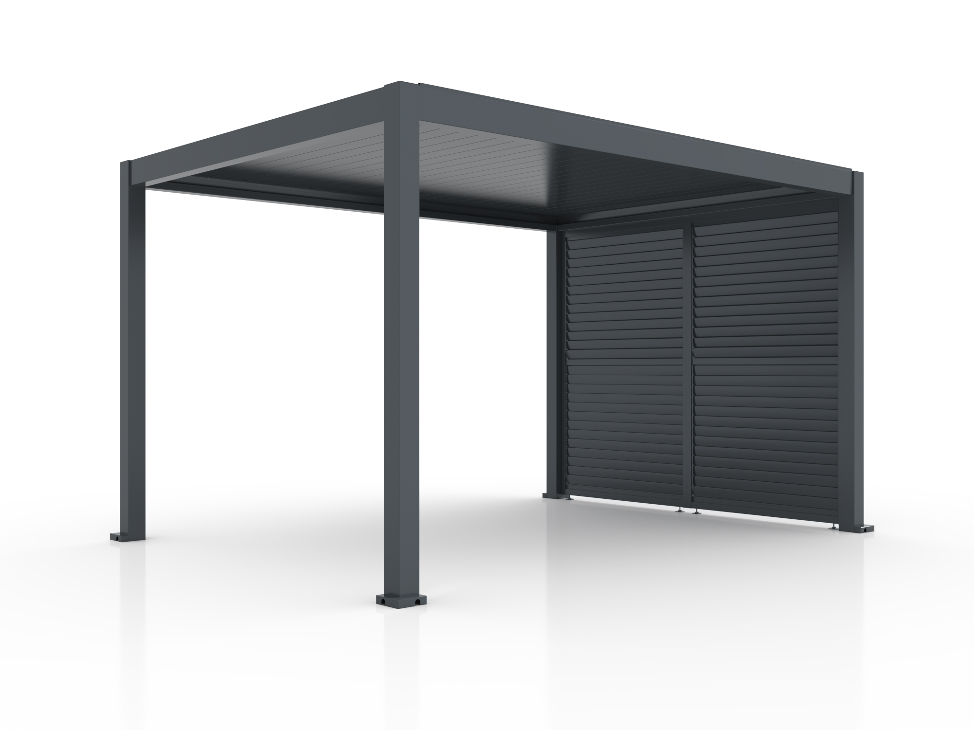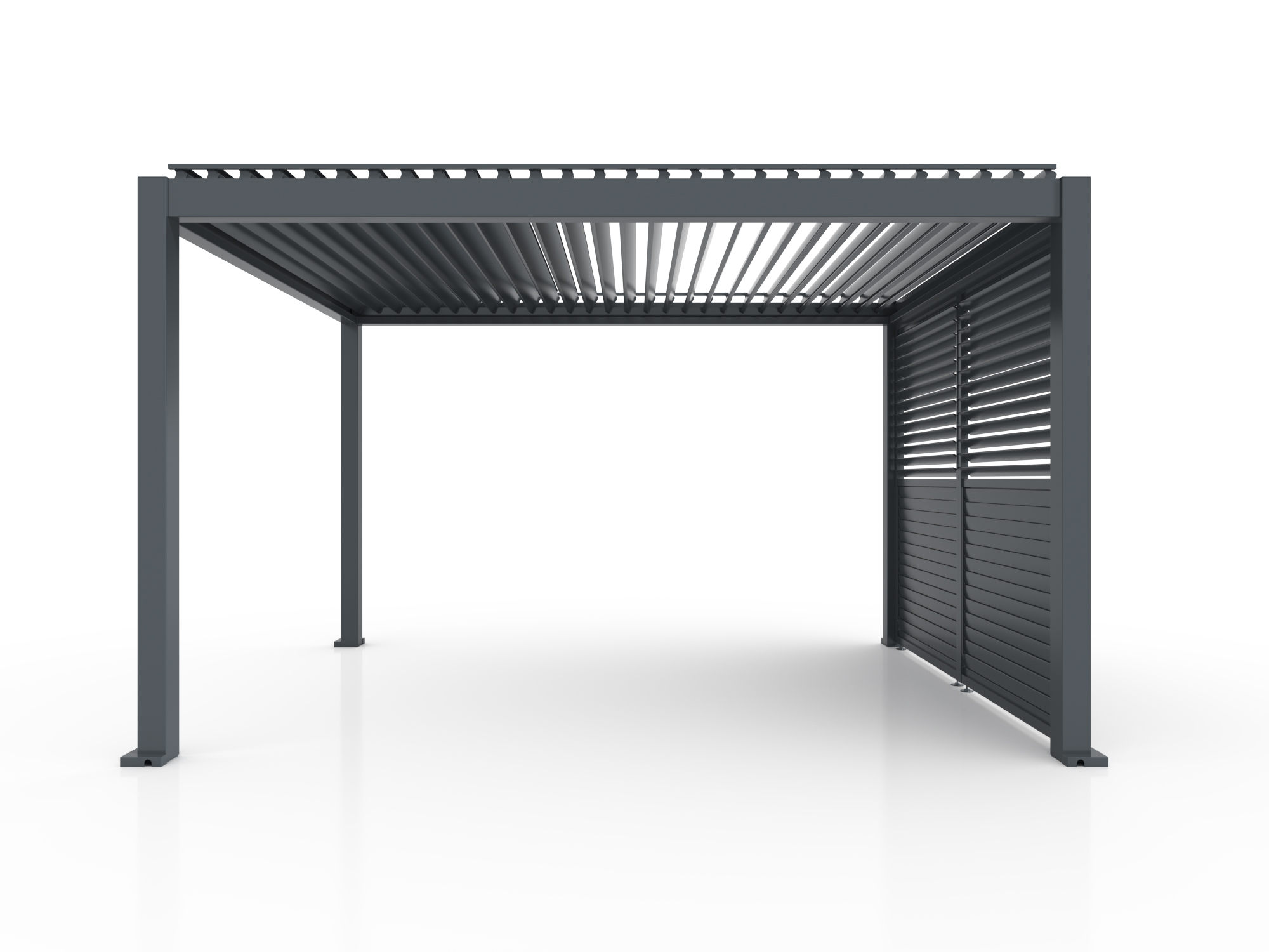 The fixed louvred wall is made of high-quality aluminium alloy 6063 T5, which provides exceptional strength, corrosion resistance, and stability. The surface is protected with an Akzo Nobel powder coating, offering long-lasting durability and protection against UV rays, moisture, and mechanical damage.