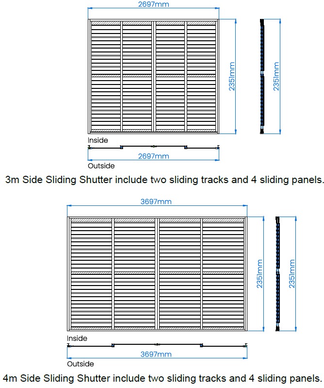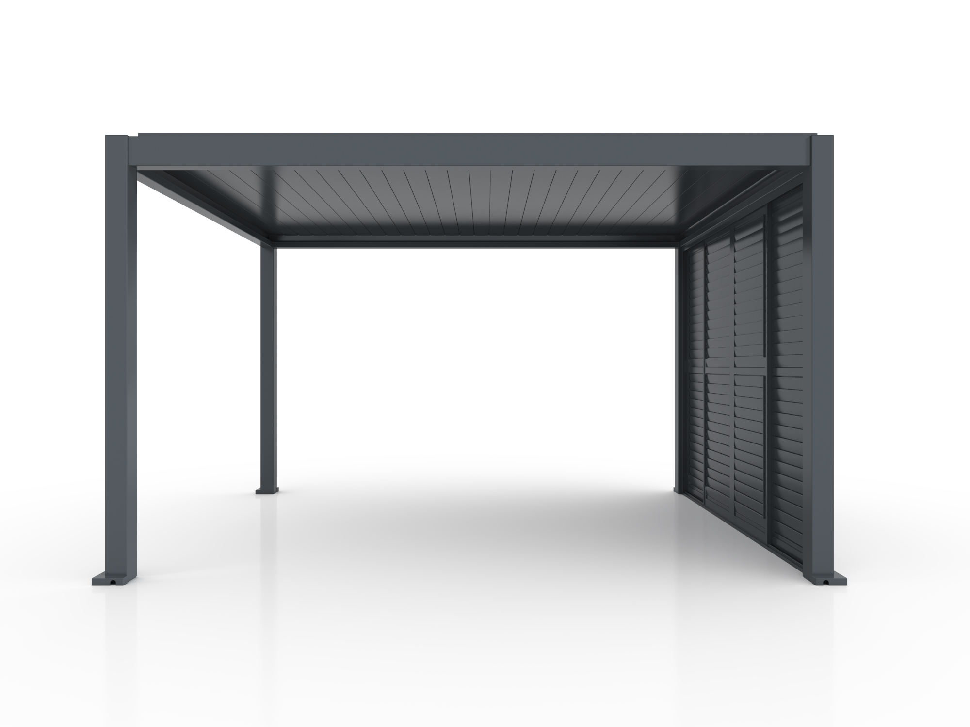 The sliding louvred wall is made of high-quality aluminium alloy 6063 T5, providing exceptional strength, corrosion resistance, and structural stability. The surface is finished with an Akzo Nobel powder coating, ensuring long-lasting colour durability and protection against UV rays, moisture, and mechanical wear.