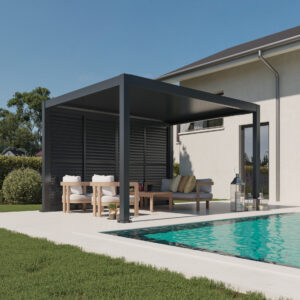 Thanks to its elegant design and premium materials, the sliding wall is a perfect choice for modern pergolas and outdoor spaces.