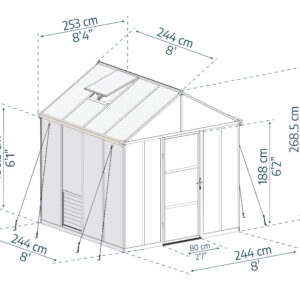 * Convenient magnetic door catch to hold greenhouse doors open