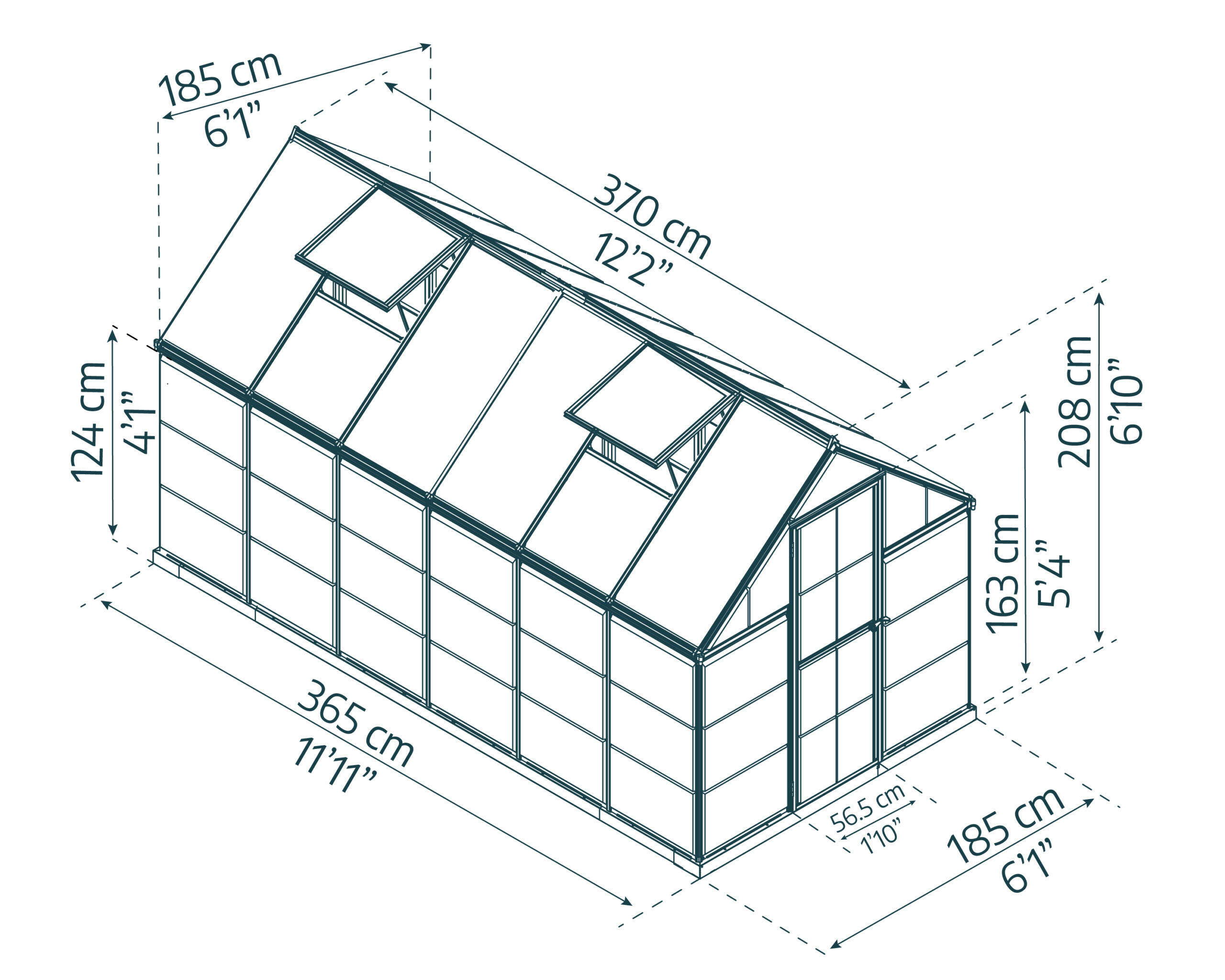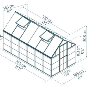 Domov > Trgovina > STAKLENIK POLIKARBONAT – HYBRID (Tip 6×12) – Dim. 185 x 370 cm – ALUMINIJ