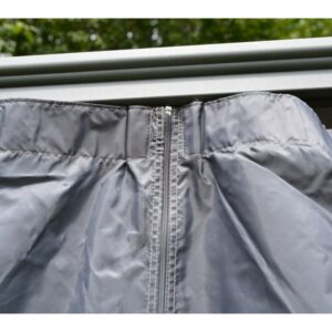 Komplet zaves je estetsko prijeten in funkcionalen. Omogoča vam zasebnost, ki jo iščete in cenite. Zasnovan je tako, da je združljiv z vašo strukturo paviljona. Zavese imajo kavlje, ki nato zdrsnejo v obešala vašega paviljona. Ta komplet vsebuje štiri zavese, ki bodo pokrivale celoten paviljon. Enostaven za namestitev in enostaven za uporabo. Ta komplet vključuje zadrge za povezavo zaves in zadrge za pritrditev na vogalne stebre. Vzdrževanje ni potrebno, preprosto jih lahko operete v stroju. Iz močnega poliestra, nepremočljive in lahke.