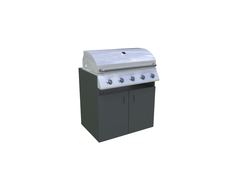 Na zgornjem sredinskem panelu zadaj se prezračevalne reže in dve odprtini za cev od plinske jeklenke, ki je spravljena spodaj v elementu.