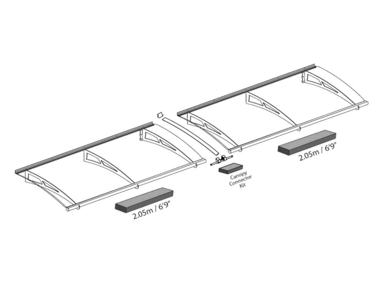 Z povezovalnim linkom lahko povežemo več nadstreškov CANOPY AQUILA.Povezovalni člen med dvema nadstreškoma Aquila. Združimo dva izdelka v skupno enoto.Polepšajte svoja vhodna vrata z elegantnim nadstreškom za široka in dvojna vrata Palram Canopy Aquila - ez link. Dimenzije sestavljeneg izdelka: 1 cm; Embalaža: ena kartonska škatla; Dimenzije embalaže: 88.5 x 6.5 x 6.5 cm: Neto teža: 0.2 kg; Bruto teža; 0.5 kg.