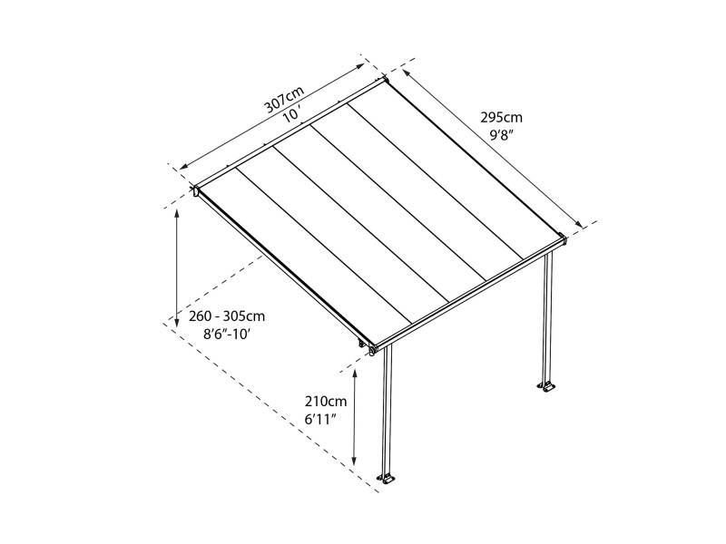 Omogoča različno zunanjo uporabo, streho terase, nadstrešek za vozilo ali s soncem obsijan prostor za sprostitev