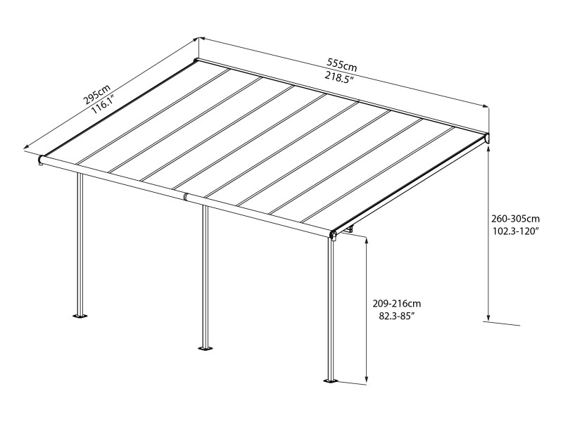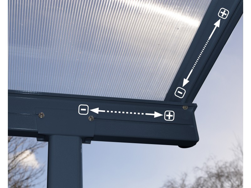 Omogoča različno zunanjo uporabo, streho terase, nadstrešek za vozilo ali s soncem obsijan prostor za sprostitev