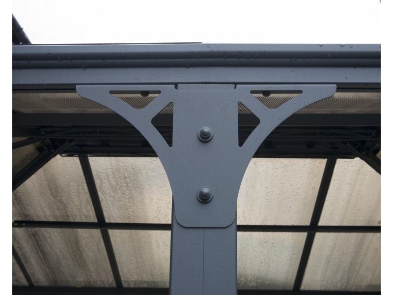 - Praktično nezlomljive dvoslojne polikarbonatne plošče debeline 6 mm, ki so 100-% zaščitene pred UV-žarki, ščitijo pred škodljivimi UV-žarki, točo in snegom